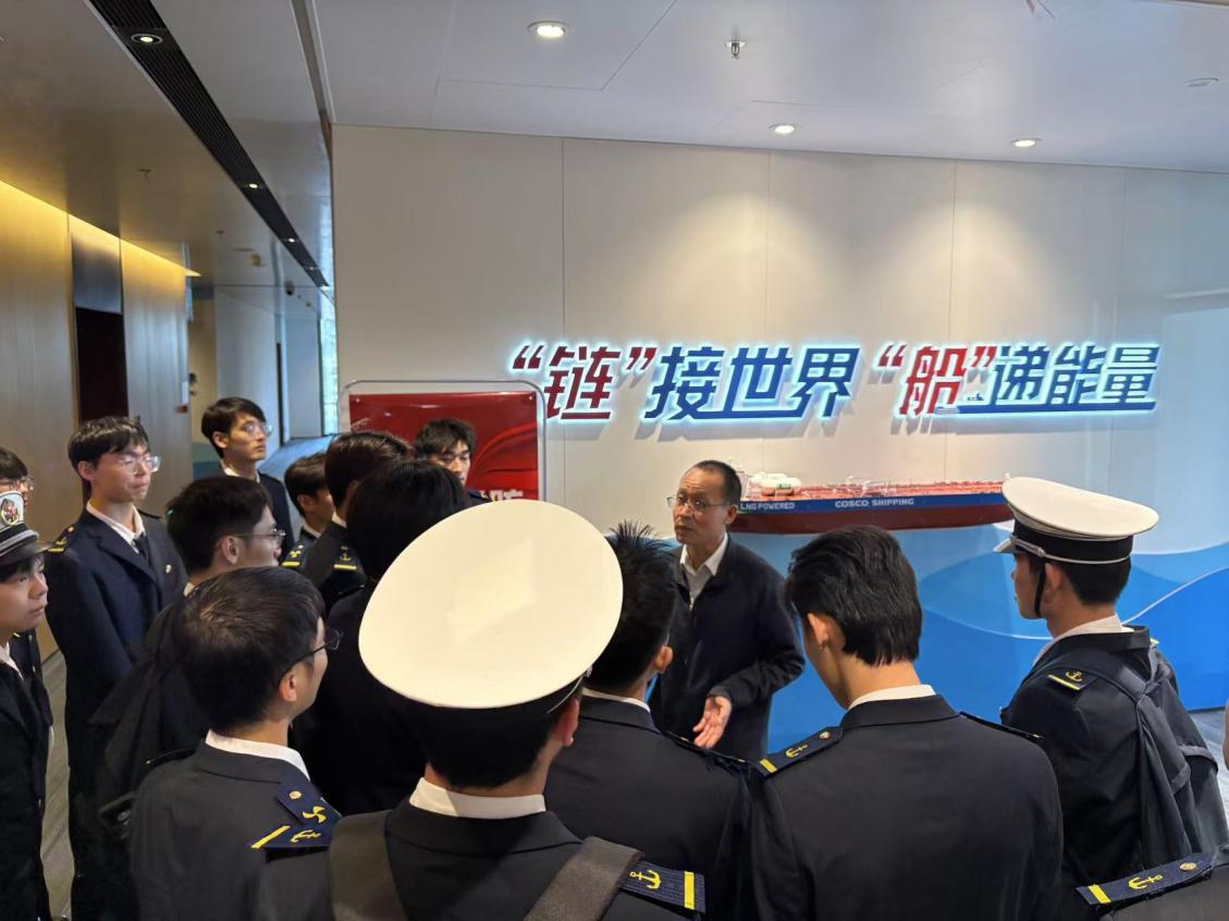 随后,卓越班学子参观了中远海运能源运输股份有限公司,了解世界上最大的油轮运输船队的发展历程,感受中远海能“链接世界 船递能量”的肉漫画精神。同学们观摩了该公司的会议室、活动室及模范船长袁祥林的办公室。同学们深入观摩了前辈的先进理论和研究成果,深刻体会到“术业有专攻”和“学无止境”的重要内涵。他们积极响应号召,将绳其祖武,学习榜样、成为榜样、超越榜样,未来能够在航海领域中拥有自己的一席之地。