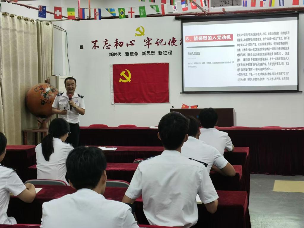 课程开始,赵垒从什么是正确的入党动机、为什么要端正入党动机以及如何用党员标准要求自己等方面进行了阐述。他分享了5种不良的入党动机及相应的危害,4种端正入党动机的有效途径,用好几个奉献在不同岗位的党员影视资料让大家深刻感受到共产党员们入党的坚定决心与顽强拼搏。同时,赵垒结合自己的求学、工作、生活经历分享了坚定理想信念,以实际行动向党组织靠拢,为党和国家事业不懈奋斗的满满获得感与自豪感。他谈到,一名党员若是在思想上未能真正入党,其信念与坚持将难以持久。作为新时代积极向党组织靠拢的航运学子,我们更要在思想上坚定认同党的纲领和章程,行动上积极践行党的宗旨和使命,主动融入党组织的培养教育和考察,不断提升自我党性修养,积极向身边的优秀党员学习,努力使自己成长为一名合格的共产党员。