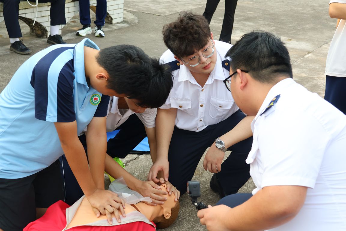 水上个人求生科普宣讲环节,讲解志愿者详细讲解了预防溺水的基本常识、自救与他救的正确做法,并通过问答互动,有效增强中学生们的水上安全意识。