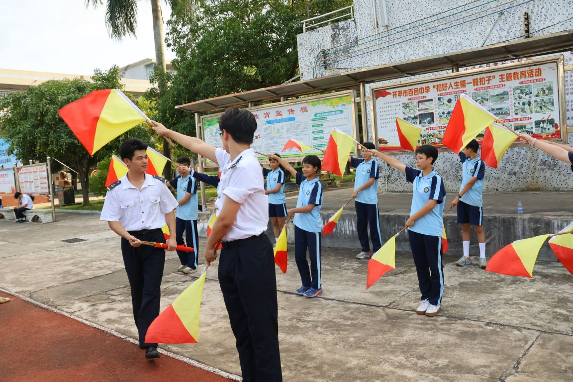 党委书记周楠带领海洋强国科普活动团队到开平市百合初级中学开展“航海知多D”第4期科普活动。活动通过护航船长报告会、航海技能展示等形式,为近400名中学生送去一堂丰富多彩、体验感满满的沉浸式海洋课堂。开平市文明办、开平市教育局、百合镇政府等有关负责人出席了本次活动。