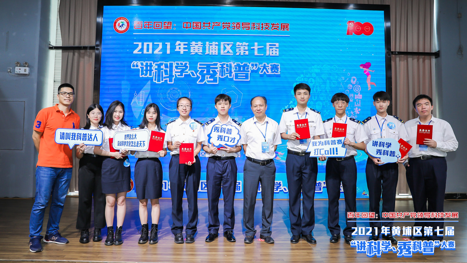 本次大赛由黄埔区科技局主办,以“百年回望:中国共产党领导科技发展”为主题,回顾党领导下的科技发展历程,展现中国特色科技创新之路。我校的8名学生与来自区内科技企业、科普基地、科研院所、中学和高校等17个单位的众多选手同场角逐。