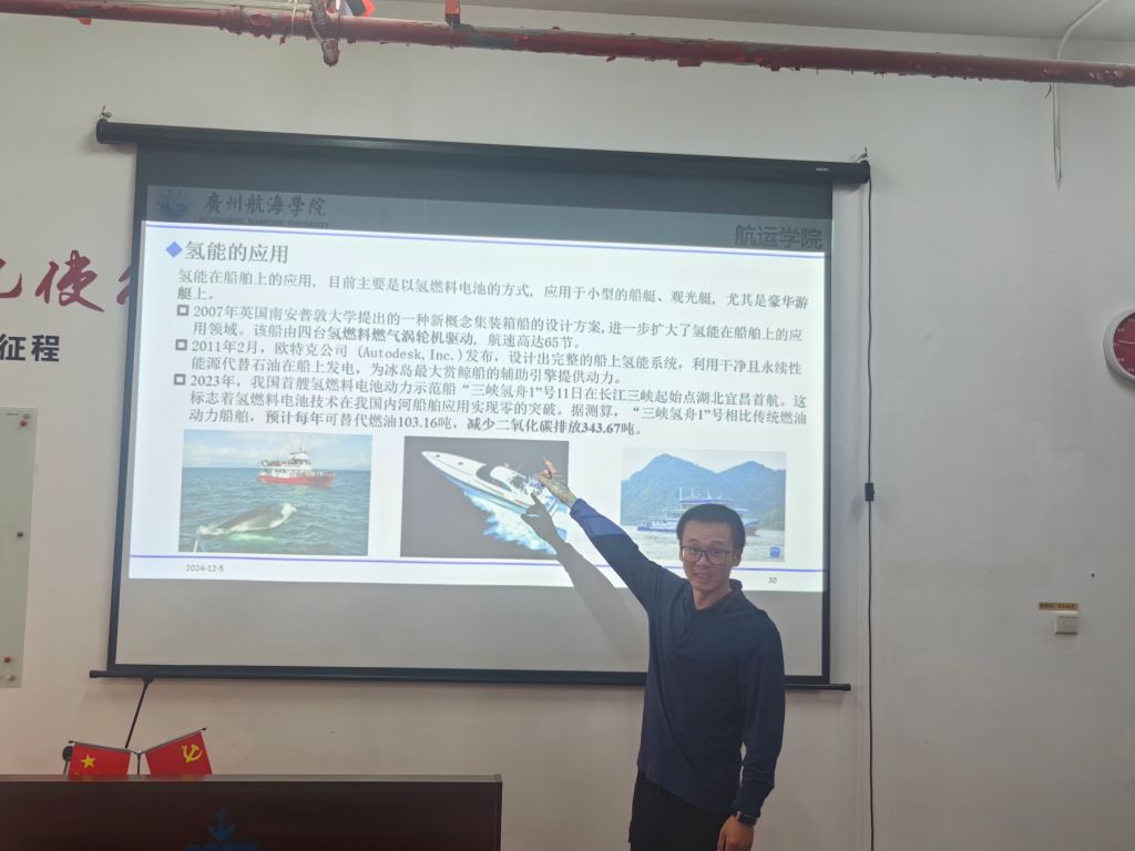 我院近年新引进10名青年博士教师围绕碳中和、新能源、材料科学、通信技术、环保技术等前沿话题,从不同学科角度分别做了精彩的学术报告。活动伊始,刘传润致开幕词,他强调了海洋强国战略对于国家发展的重要性,并鼓励青年学者积极投身海洋事业,为国家的海洋强国建设贡献力量,为培育航运红匠奠定坚实基础,为院校科研发展、学生科技竞赛等贡献青年教师力量。随后,学术沙龙正式拉开帷幕。