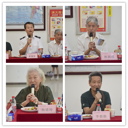 与会校友们认真听取了母校近些年发展介绍,对母校翻天覆地的变化倍感欣慰和自豪。在交流环节,校友们首先感谢学校热情、周到、细致的服务,特别是在校园中听到“欢迎回家”“爷爷”“奶奶”等亲切的问候,他们倍感温暖,林润成、杨清玲、李勋焕三位代表饱含深情地分享了个人求学经历、工作历程、人生感悟以及对母校的美好回忆等。他们表示,离别多年,每个人都有着十分丰富的人生经历和感悟,但难以忘怀的永远是那段单纯美好的青春岁月,感谢母校的教育培养以及同学的鼓励陪伴,今后将继续心系母校、情牵学院,努力为母校学院建设发展增砖添瓦。座谈会上,大家还就校史校情进行了交流。