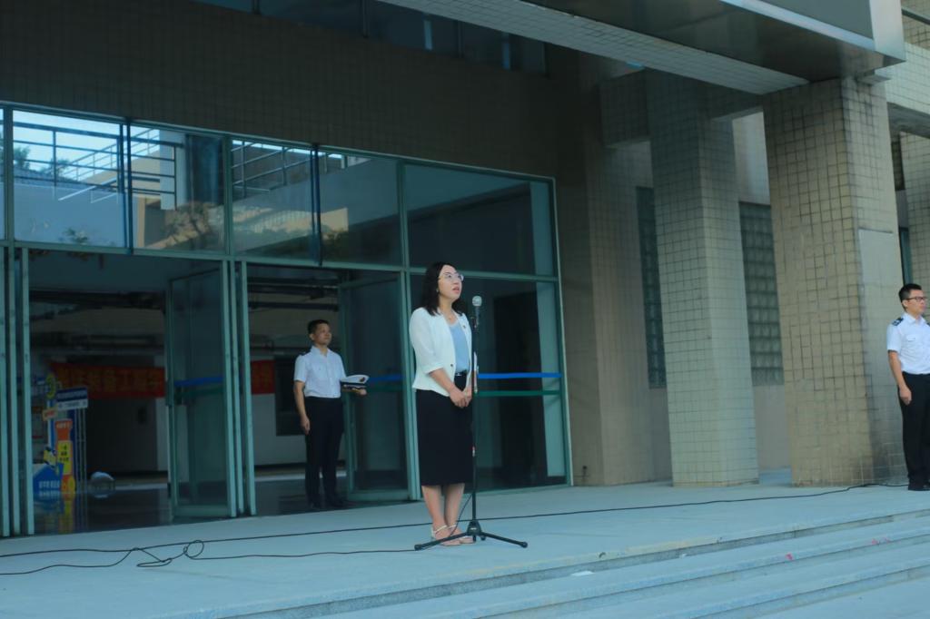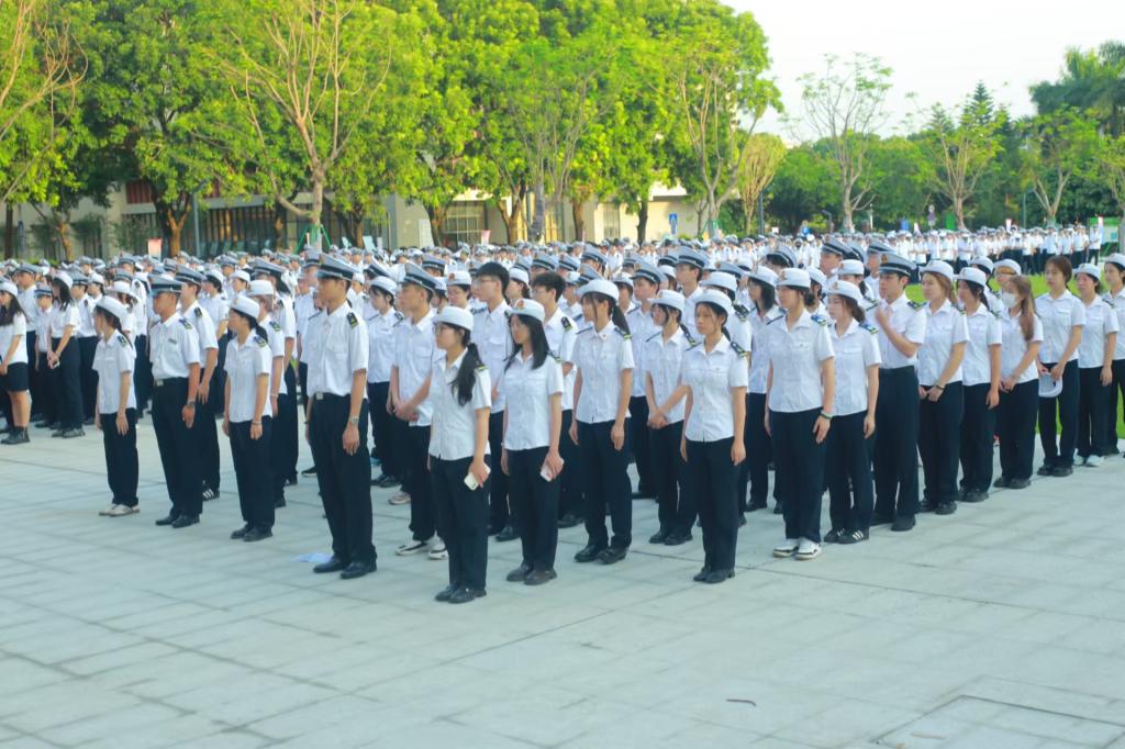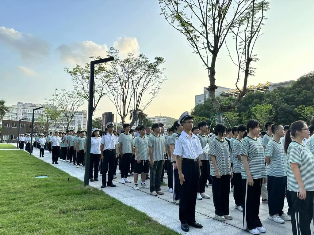 于9月2日清晨在海燕广场举行新学期升旗仪式暨开学典礼。学院党委书记周楠、全体中队长、2022—2024级在校学生近1900人参加了本次活动。