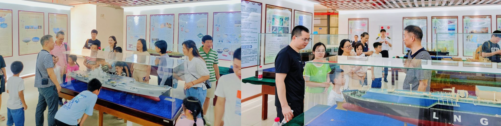 船模展区涵盖货轮、客轮、军舰等多种类型模型,令观众流连忘返。专业教师以船舶模型为载体,详细解说船舶精巧构造,讲述我国航运发展史,展示海洋、航运与海上防卫科技成就,激发市民民族自豪感,引导市民增强海洋意识、树立正确海洋观。