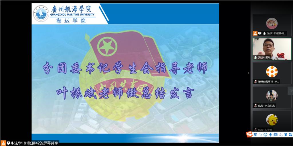 (海运学院供稿)6月29日至30日,海运学院在线上举办分团委学生会学生骨干换届答辩会,学生第一党支部书记赵垒老师,学生第二党支部书记吴成结老师,分团委书记叶振斌老师以及248名学生代表参加此次答辩会,答辩会由张倩同学主持。