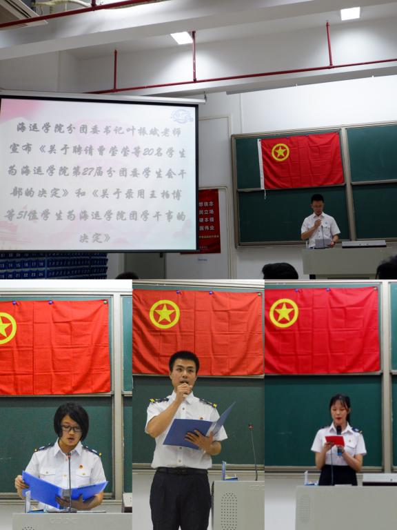 (海运学院供稿)11月9日晚,海运学院在健兵楼400室举行分团委学生会学生干部换届暨表彰大会,海运学院大队长林少栋老师、中队长赵垒老师、吴成结老师、叶振斌老师及近三百名学生干部代表参加了大会。