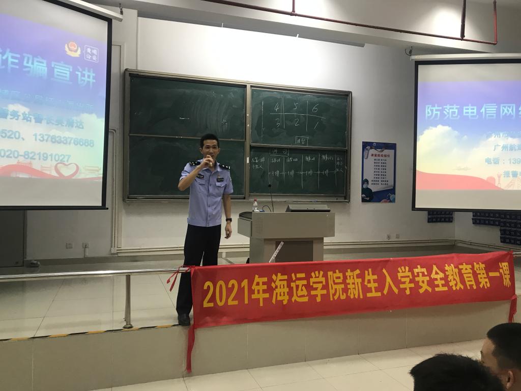 (海运学院供稿)为更好宣传防诈骗知识,928日晚我院在健兵楼400室举行2021级新生防诈骗教育第一课。本次讲座邀请到红山派出所吴清达警官主讲,2021383名新生参加了本次讲座。