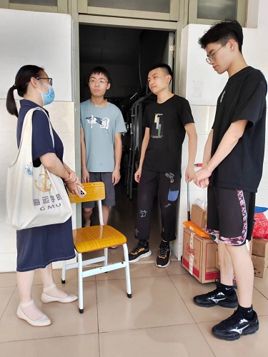 (海运学院供稿)为切实做好校园新冠肺炎疫情防控工作,了解关心我院学子近期的学习生活状况,4月14日下午,海运学院法学专业教研室郑才容、张敏、李华武、陈石老师,海事管理专业教研室张金水、沙正荣、章春华、赵士涛老师,航海技术专业教研室祝鸿、王灿武、李贝贝、秦志勇在海运学院中队长陪同下深入学生宿舍与学生谈心谈话,并重点关心在宿舍居家观察的同学线上上课及生活状况。
