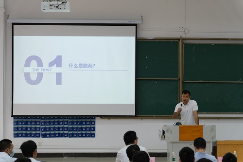 曾智船长由“什么是航海”引入,以一首船员版《孤勇者》向同学们分享了海员生活,并从自己毕业后投身航海经历出发,将远洋航行、生活和工作等方面的具体情况和趣事娓娓道来,让同学们仿佛置身于大洋中航行的巨轮上,充分感受远洋航行的魅力。随后,曾船长对当前的就业形势、最新航运动态、国际船员工资行情等进行介绍,并多维度介绍航海技术专业学生的就业方向,围绕船员生活、日常工作、职业规划、岗位晋升、薪资情况、人际关系处理等学生关注的热点问题与同学们展开交流,为同学们未来的职业规划指明了方向。