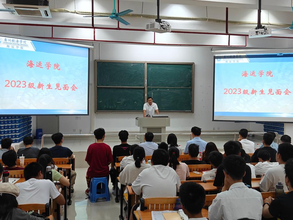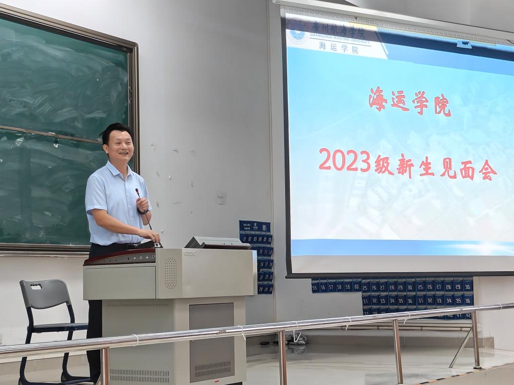、学科发展、教学科研、团队建设及平台、人才培养、学生活动等六个方面对学院进行详细介绍。唐强荣副校长结合个人学业成长与学校发展,勉励新生们一要汲取知识力量,助力成长成才。充分利用学院在学科专业、师资力量和教学设备上的丰富资源,掌握专业知识,锻炼专业技能。二要不负青春使命,勇担时代重任。时刻牢记习近平总书记向广大青年提出的“要力行,知行合一,做实干家”的要求,以实干为行动指南,在实干中将爱国之情、报国之志转化为热爱航海事业的实际行动,积极投身航海事业。三是早日确立人生目标。揽万卷文集,汲百代精华,秉承“勤学、善思、厚德、求新”的校训,树立远大理想和奋斗目标,书写好大学“奋进之笔”,成为新时代的“追梦人”。