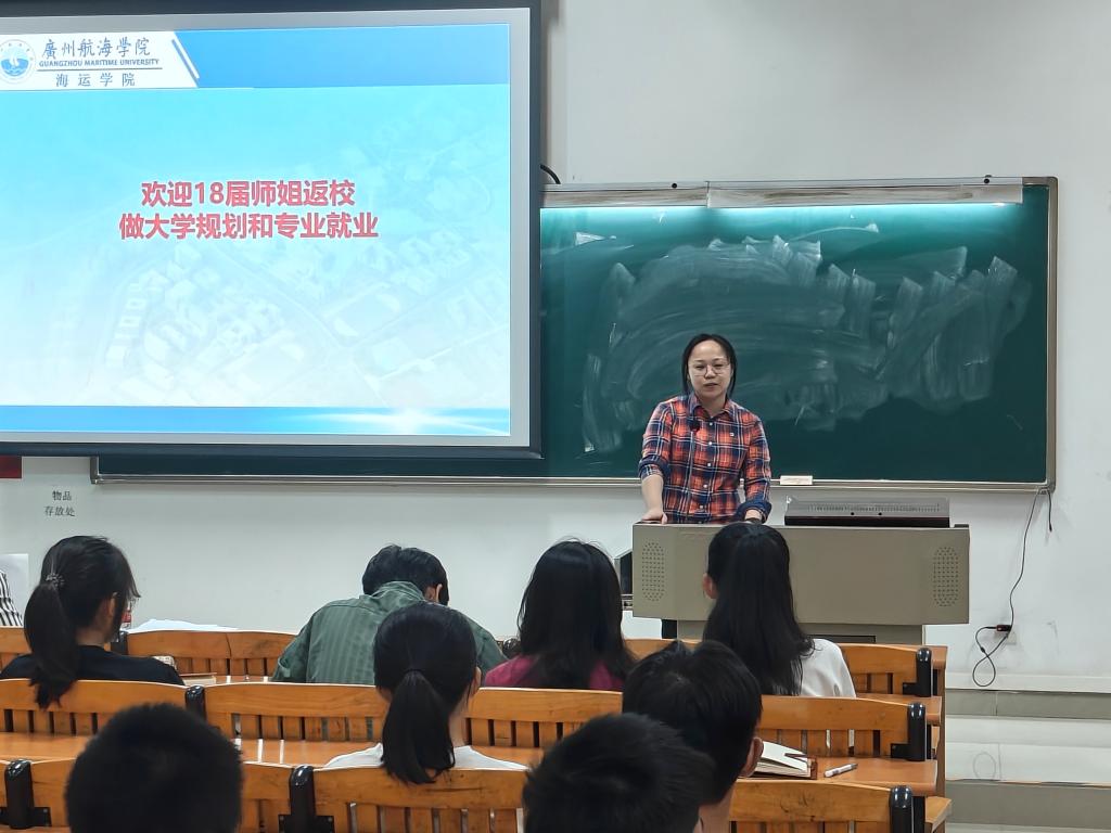 (海运学院供稿)11月12日晚,海运学院邀请广州港引航站现担任政工室政工员李圣媛和广州市黄埔区联和街道办事处党建指导员詹志琴在健兵南302教室为我院23级海事管理作“谈大学生活,看就业前景”主题分享会,2023级海事管理专业全体同学参加了分享会。