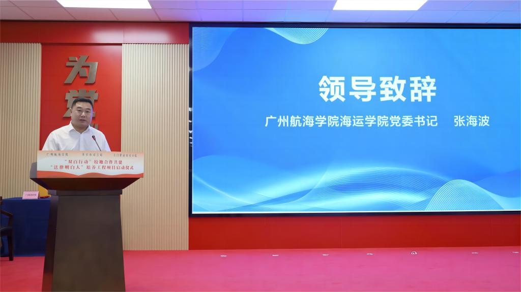 海运学院与开平市司法局等校地共建项目“法律明白人”培养工程启动仪式在开平市委党校举行,我校海运学院党委书记、驻开平“双百行动”服务队队长张海波、海商法教研室主任郑才荣博士、冼婧晗博士等师生一行七人参加活动,并与开平市委副书记、政法委书记关耀东,开平市司法局党委书记、局长林上金、江门职业技术学院领导等一同上台在大屏幕前共同触屏启动仪式。