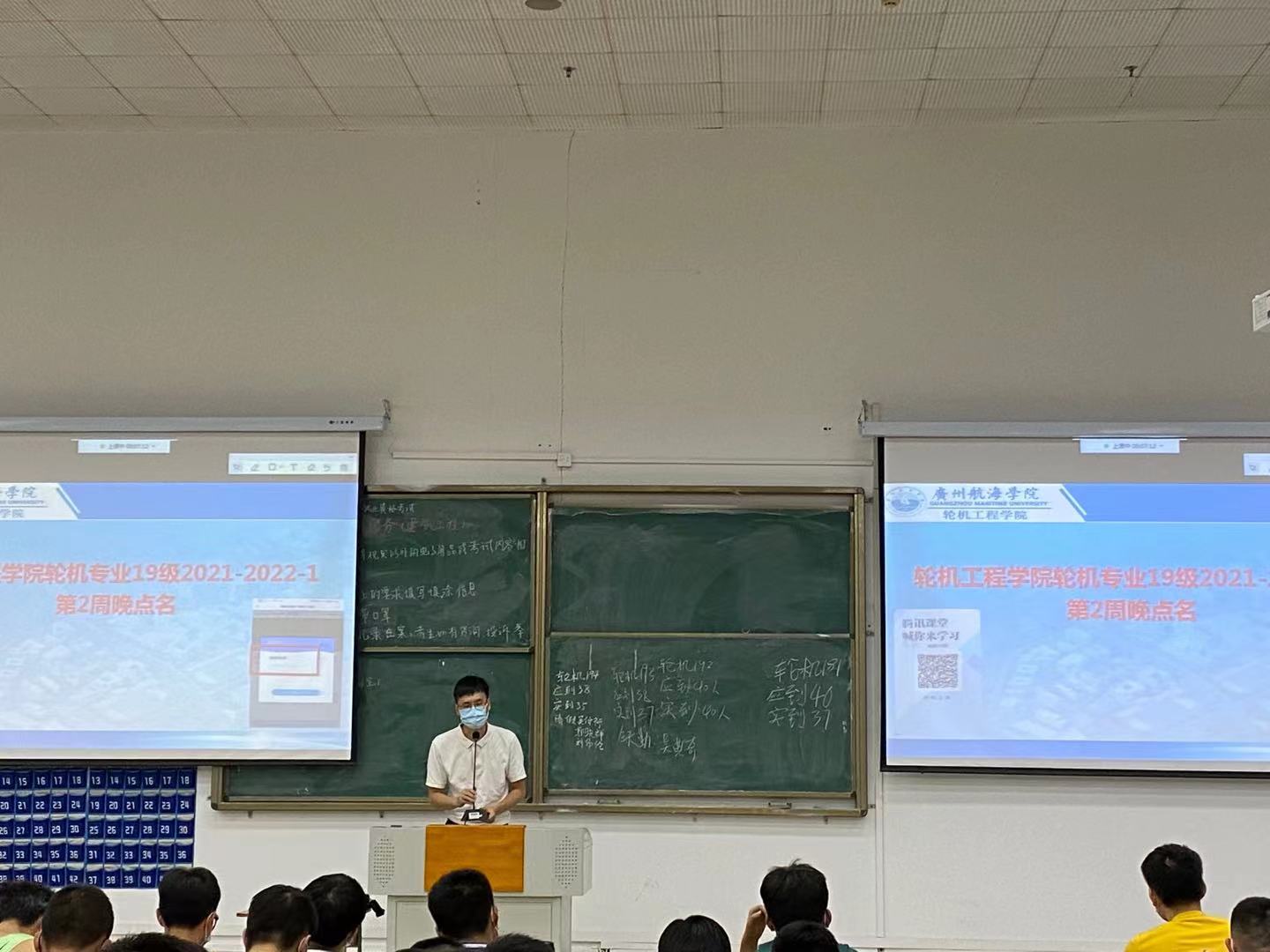 (轮机工程学院供稿)9月12日晚,轮机工程学院轮机专业19级中队在教学楼111教室开展第二周晚点名暨安全教育会,中队长陈茂嘉以及中队同学参加了会议。会议由陈中队主持。
