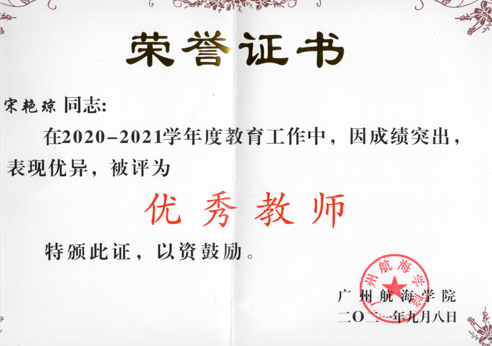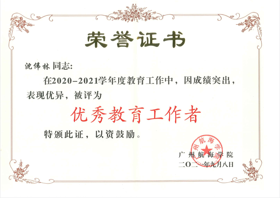 在我院全体师生员工的共同努力下,我院各项工作在2020-2021年度取得新的突破。我院尹衍升教授与鞍钢合作项目《极寒环境用高强㓞易焊接海洋装备用钢关键技术创新及工程应用》项目获治金行业科技进步一等奖;《海洋严酷环境使役材料与运维装备》获省级重点实验室;《轮机工程专业》获批省级一流本科专业;滕宪斌教授负责的《基于“互联网+”虚拟仿真技术的船舶轮机人才培养模式改革创新研究》获广州市教学成果培育项目,并获校级教学成果一等奖;学院《海洋工程装备及材料蚀损机制与防护技术》获省级普通高校创新团队;肖乐明、毕齐林等老师指导的学生获得省级比赛银、铜奖等,学院教工、学生在全校校运会等双双获得第一名;学院全体教师积极向上,爱党爱国爱校,热爱航海事业,立足本职工作,按照国家海事局的要求,90%以上的专业教师均通过海事主管机关组织的师资考试,以优秀成绩通过国家海事局船员培训资质和体系审核,以及教育部本科合格评估。学院2016年成立以来,学院领导班子履行职责、团结同事、关心学生,凝心聚力,形成了“求真、务实、奉献”的轮机精神,各项工作均取得优秀成绩,在行业内得到认同。荣获2020-2021年度校级“先进集体”的荣誉称号。