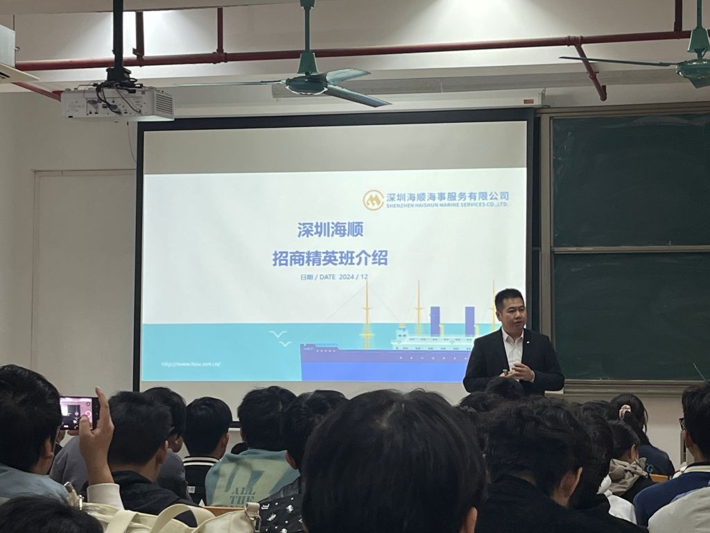 健兵北301进行了招商精英班宣讲会。深圳海顺海事培训中心院长杨荣辉、广州海顺船务有限公司总经理助理谢元辉、深圳海顺海事服务有限公司船员招聘部副主管孙浩峻,肉漫画